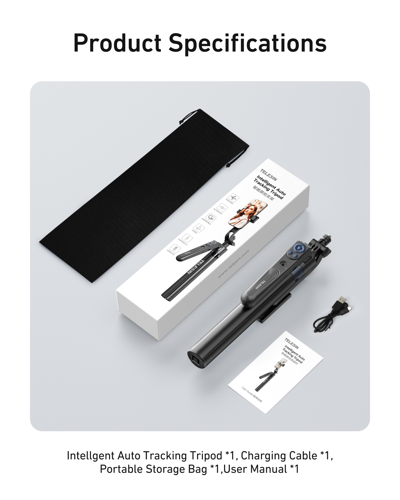 سه پایه و مونوپاد بلوتوثی هوشمند تلسین مدل P3-MS-03با ردیابی خودکارسوژه