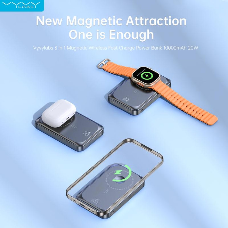 VYVYLABS 3 IN 1 MAGNETIC WIRELESS FAST CHARGE POWER BANK 10,000 MAH 20W (TARNISH)