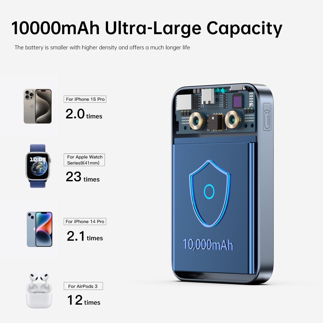 این پاوربانک با ظرفیت اسمی 10000mAh و توان خروجی 20 وات، یکی از بهترین انتخابها برای شارژ گوشی، ایرپاد و سایر گجتها در هر شرایطی است. عملکرد پایدار و سرعت بالا باعث شده جزء پرفروشترینهای ویویلبز باشد.